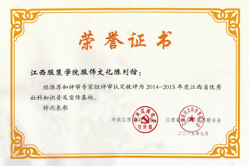服装博物馆集收藏、展示、教学和科普于一体,在服饰文化社科普及宣传等方面取得了显著的成果。连续多次纳入全省社科普及宣传周暨学术活动周项目,众多省市领导出席活动。媒体争相报道,得到社会各界好评。服饰文化科普周和《霓裳讲堂》等得到省社联和省委宣传部资助,荣获“江西省优秀社科普及宣传基地、“全国社会科学普及教育基地”。馆长赵子建荣获“江西省优秀社科普及工作者”称号。